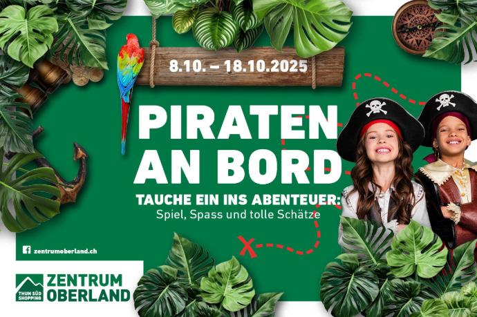 Im Zentrum Oberland sind die Piraten los: Entdecke Spass und Unterhaltung für die ganze Familie, begib dich auf Schatzsuche und stell dein Freibeuter-Talent unter Beweis. Diese und weitere Erlebnisse warten auf unsere grossen und kleinen AbenteurerInnen.